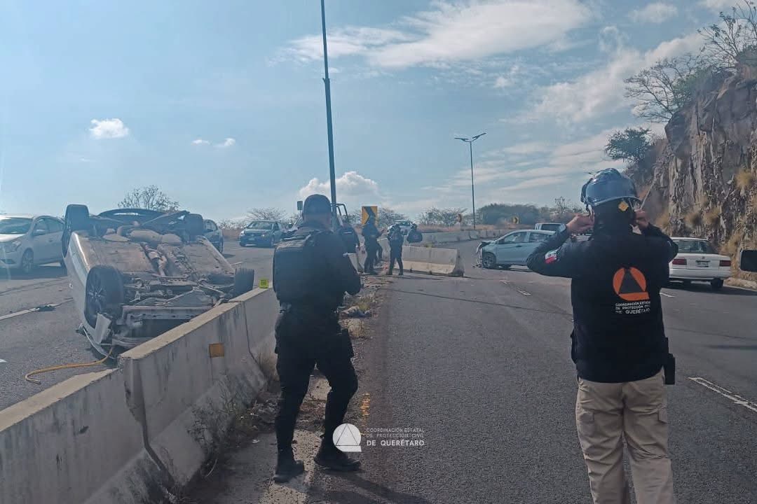 📅 10 DE DICIEMBRE DE 2025 Querétaro, Qro.— Una volcadura ocasionada presuntamente por exceso de velocidad derivó en un doble accidente sobre el bulevar Bernardo Quintana–Junípero Serra, lo que generó fuerte movilización de cuerpos de emergencia y complicaciones viales durante la mañana de este miércoles.