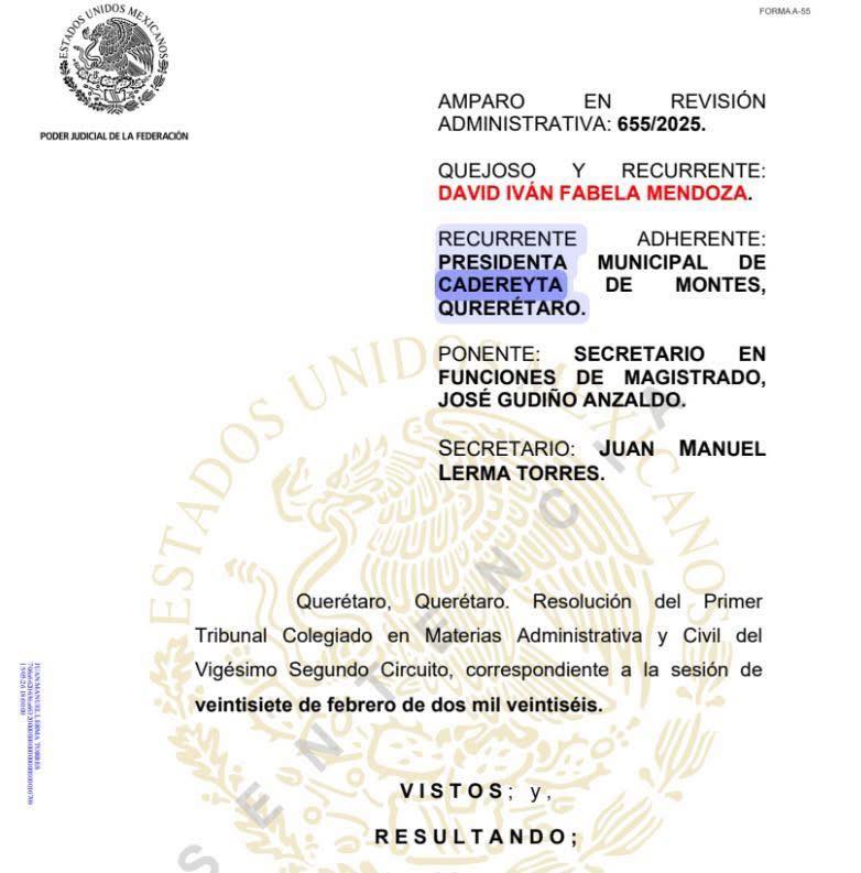 Tres magistrados del Primer Tribunal Colegiado en Materias Administrativa y Civil del Vigésimo Segundo Circuito ordenaron reabrir el amparo por el programa de vales escolares “Impulsando Sueños”, tirando el sobreseimiento que protegía a la administración de Cadereyta y devolviendo a la mesa la exigencia de transparencia sobre un presupuesto municipal superior a los 400 millones de pesos. Hoy, además, la Sala Regional Toluca, en el expediente ST-JDC-31/2026 (derivado del TEEQ-PES-10/2025), deberá decidir si Fabela se disculpa con la presidenta municipal o si suma otra victoria frente a ella y al aparato municipal y federal que la respalda.