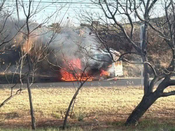 25 DE FEBRERO DE 2026. Se registró un nuevo incendio de automóvil en el libramiento Fray Junípero Serra, a la altura del Hito de la colonia La Pradera, en el municipio de El Marqués, Querétaro.