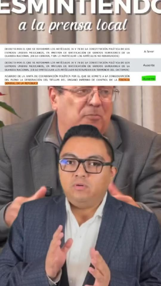 Y del otro lado, Gilberto Herrera Ruiz: en TV dice que votó a favor de la Ley General de Aguas, pero la Gaceta Parlamentaria demuestra que se abstuvo; critica al PAN por respaldar a la nueva fiscal Ernestina Godoy “para mantener privilegios”, cuando él ni siquiera se presentó a votar y aparece como ausente, con investigaciones abiertas por presunto desvío millonario en la UAQ.