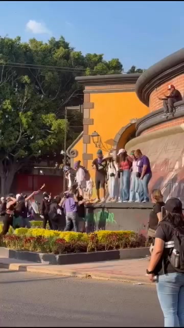 ⚠️🚨 AYER 8 DE MARZO. Durante la marcha del 8M en Querétaro se registraron distintos actos de violencia. Aquí, un video de uno de esos momentos en Zaragoza, en la fuente conocida como El Tanque.